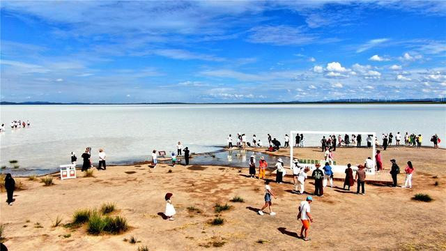 已是立秋,锡林郭勒盟太仆寺旗牛奶湖畔依旧景色宜人,凉爽舒适,热度不减。8月8日,游客已排满长队,等待乘坐摆渡车进入牛奶湖景点。而在景点内,各项安全保障措施也落实到人、到点,为游客增添了更多的安全感。游客在湖畔打卡,或拍照留念,或欣赏景色,在蓝天的映衬下,洁白无瑕的牛奶湖静谧优美,令人心旷神怡。