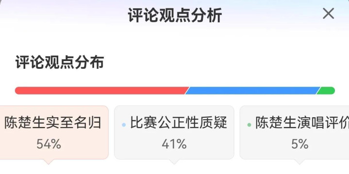 网络针对比赛结果的一轮投票数据显示,有百分之四十一的网友认为比赛公正性质疑。