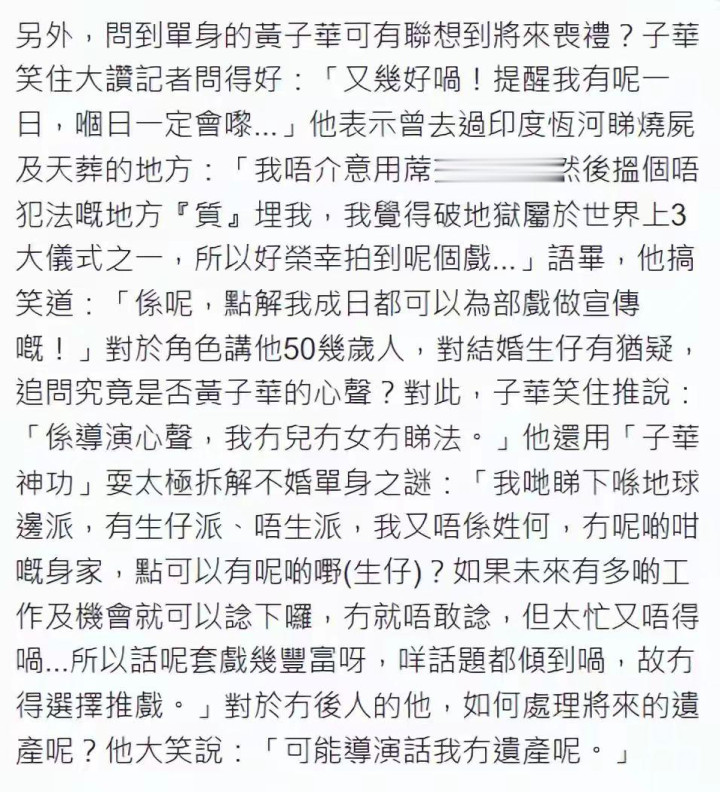 黄子华今年也有64岁了,去年的《破地狱》大火后,他谈到了人生最大的遗憾,不是不婚不孕,而是辜负了黄霑。他没有做到像黄霑一样的潇洒,一生谈了4段感情,最后却是孤独收场。