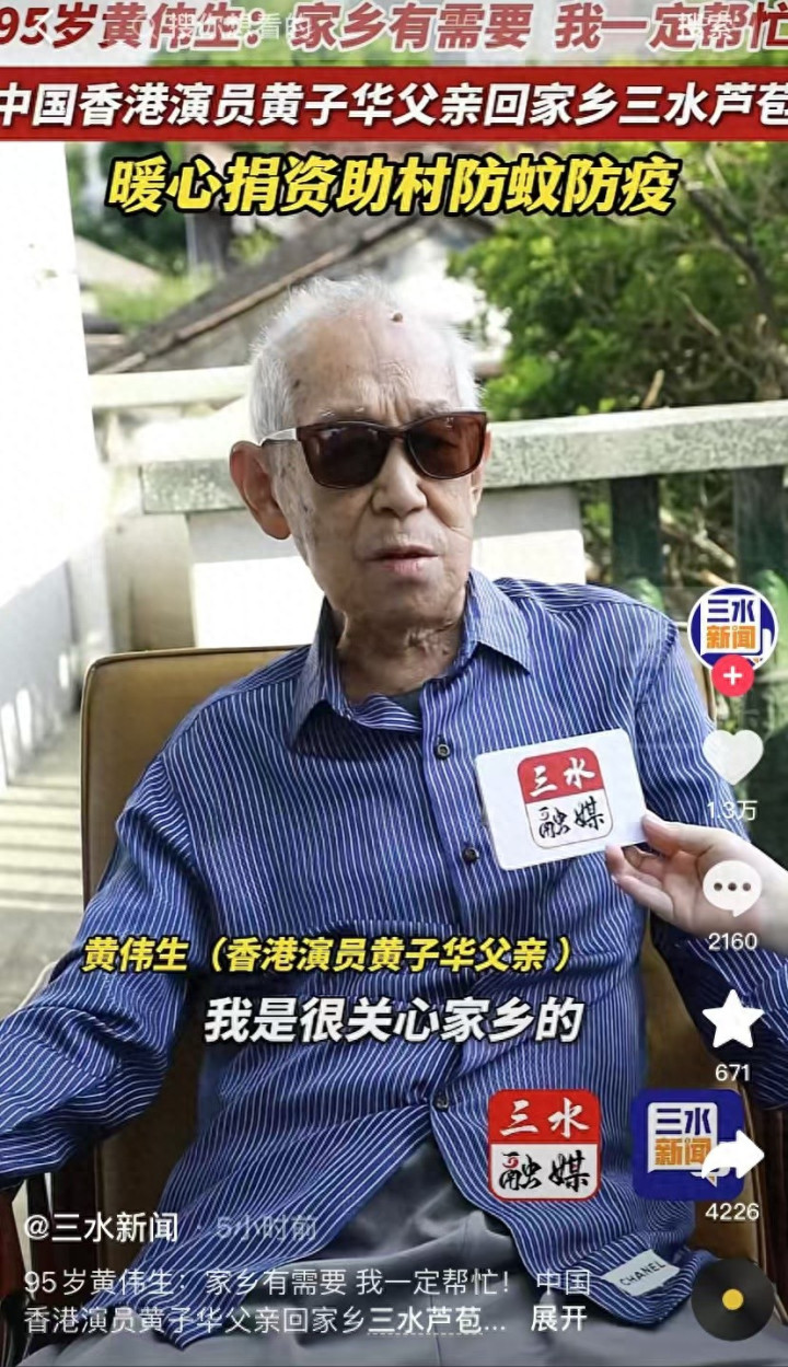8月12日,佛山三水的一则新闻上了热搜,大家才发现原来他就是香港栋笃笑黄子华的父亲。只是令人意外的是,这位父亲跟黄子华的长相一点也不像。他打扮时髦,脸型帅气,并不像黄子华一样凸嘴,不过口才却是和黄子华一样。95岁了,说话有条有理,头脑非常清晰。