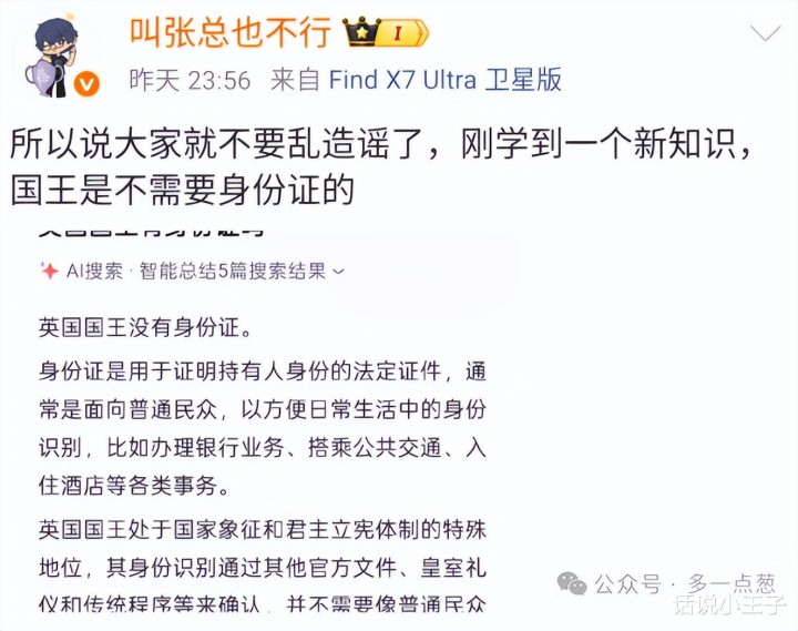 对于任何一名选手来说,路人缘是特别重要的,如果你连最基本的路人缘都没有,那么很有可能你的风评以及你的人品都是比较差的。现在EIk口碑算是跌到谷底了,只不过他也不能怪别人,毕竟都是自己自找的。现在就连IG老板都出来讽刺EIk,IG老板就表示,大家都不要乱造谣了,刚学到一个新知识,国王是不需要身份证的。