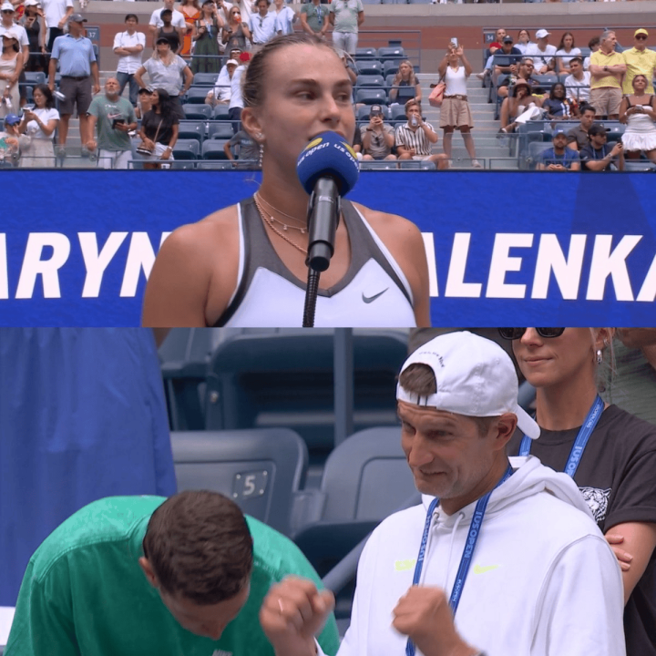 主持人:“我注意到你的包厢里出现了一位新成员——双打名将马克斯-米尔内,他曾被称为白俄罗斯野兽。”