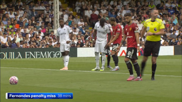 在2025-26赛季英超第2轮,曼联客场对阵富勒姆。布鲁诺-费尔南德斯主罚点球高出,令人惊讶的是,他错失点球的原因或许是被主裁判撞了一下。