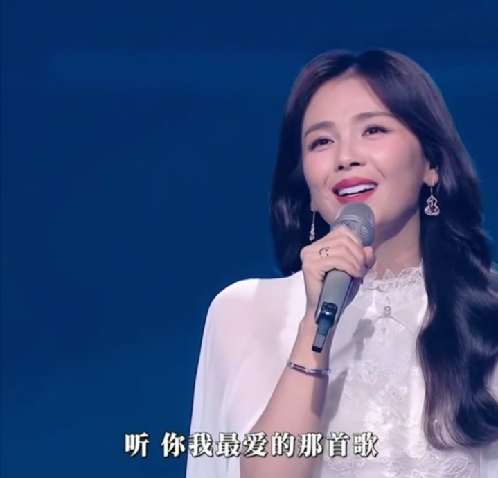 站在舞台上的她,面容姣好,通身散发着不老女神的魅力,实在亮眼,不愧是让琼瑶苦等三年的美人,岁月也格外优待她。