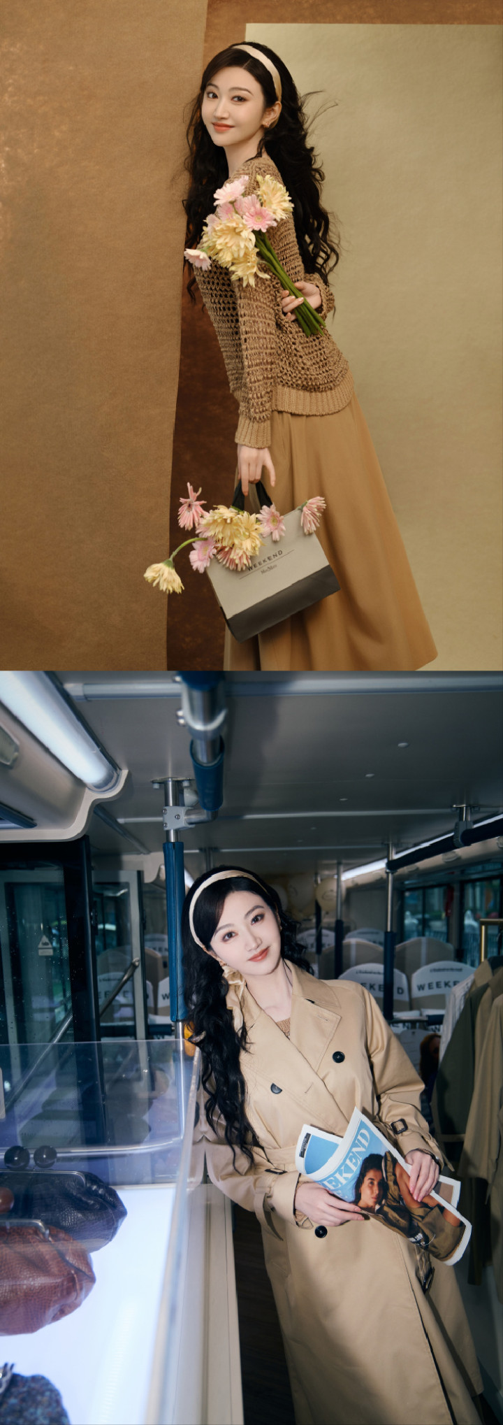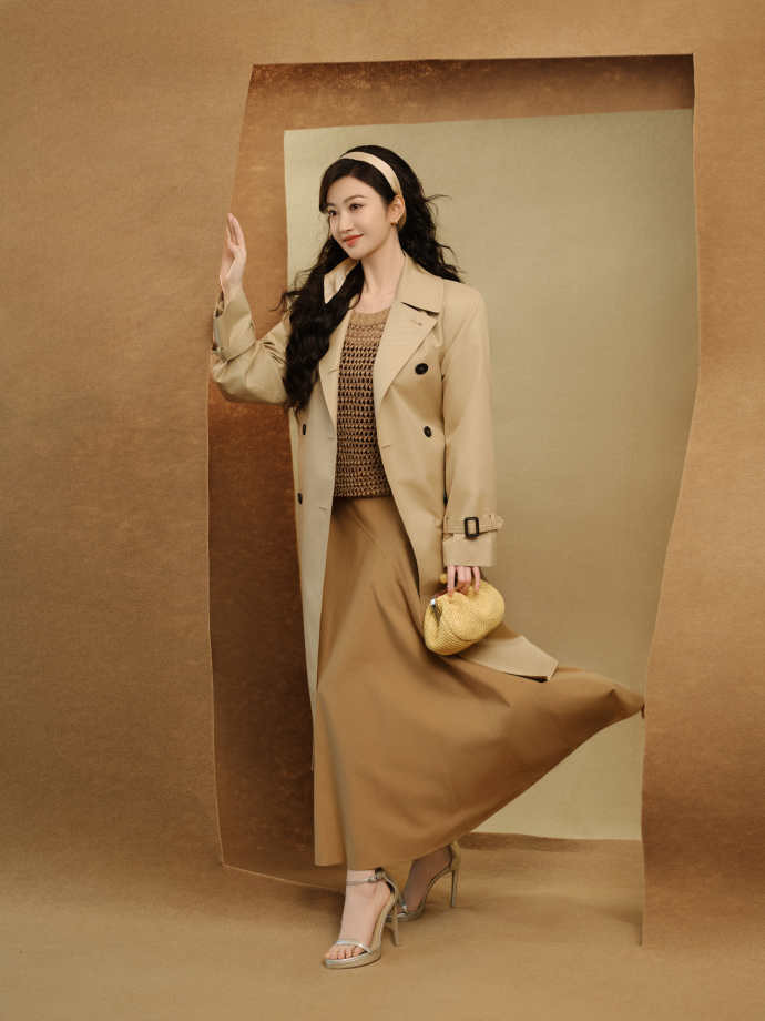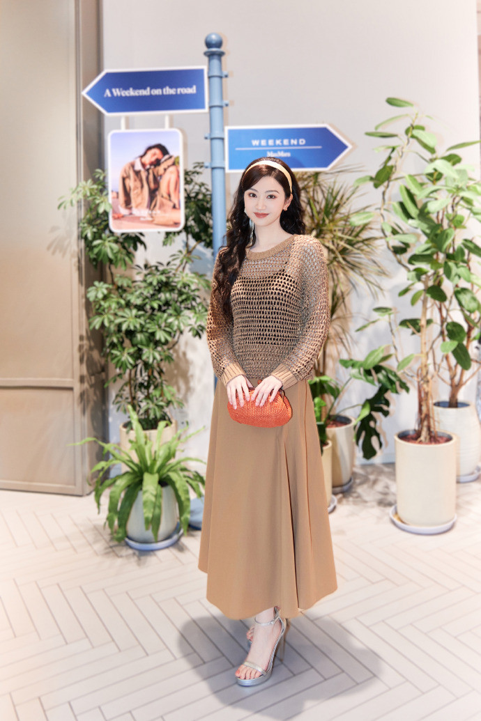 江疏影黄裙衬笔直美腿,86 年熟龄优雅,V 领 + 短裙演绎