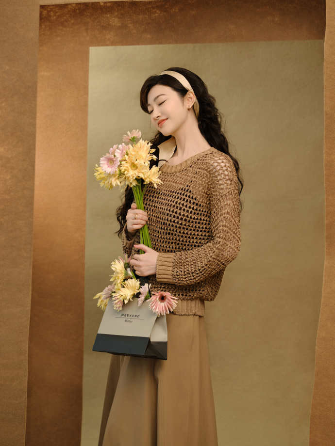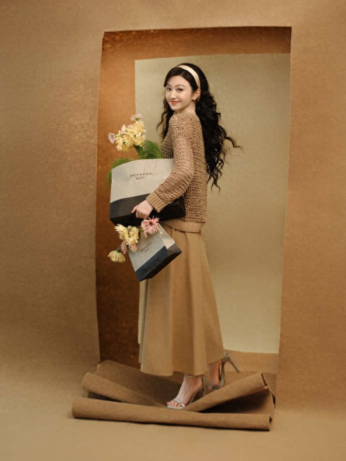 景甜穿着镂空针织衣脚踩高跟, 美的无敌了