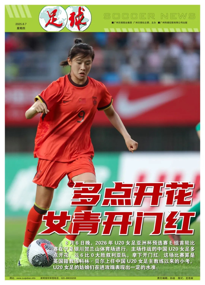 记者王伟报道 8月6日晚,2026年U20女足亚洲杯预选赛E组首轮比赛在宁夏银川贺兰山体育场进行。主场作战的中国U20女足多点开花,以6比0大胜叙利亚队,拿下开门红。这场比赛算是英国籍教练科林·贝尔上任中国U20女足主教练以来的小考,U20女足的姑娘们在进攻端表现出一定的水准。