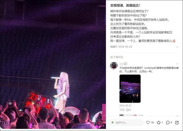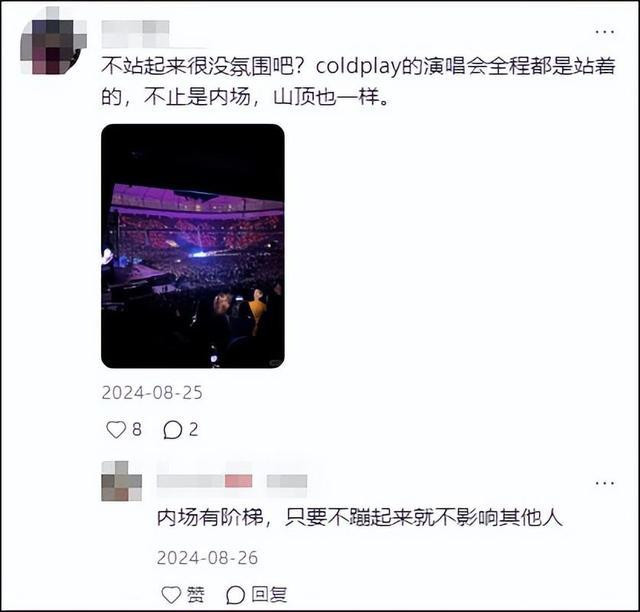 有网友也表示:“不站起来很没氛围,不止内场,山顶也一样。”