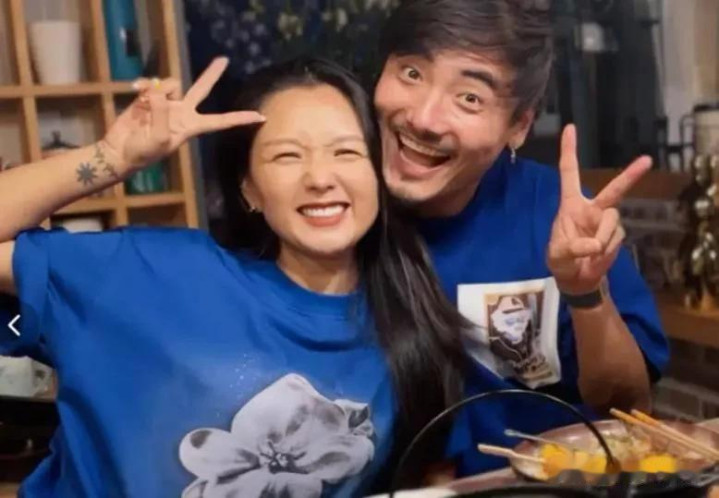 何洁和二婚老公刁磊, 吃火锅被拍。怎么黑的油光锃亮, 这眼光?