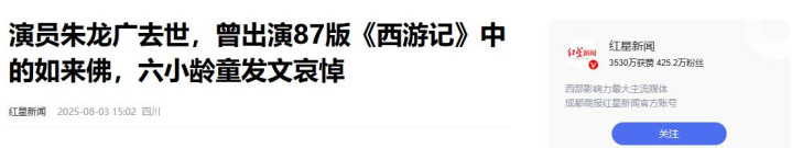 红星新闻|演员朱广龙去世,曾出演87版《西游记》
