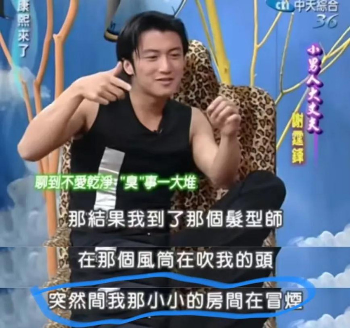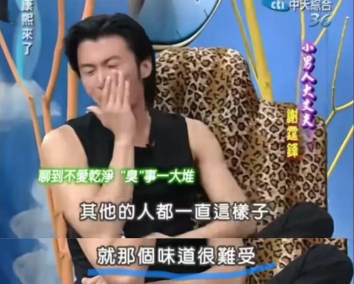 谢霆锋不爱洗头,早已是娱乐圈不公开的秘密,早年在21年前,2004年上《康熙来了》的时候,他就亲口爆料自己非常不爱洗头,起码要一个礼拜洗一次头,化妆师给他吹风的时候会冒烟,有明显的异味。