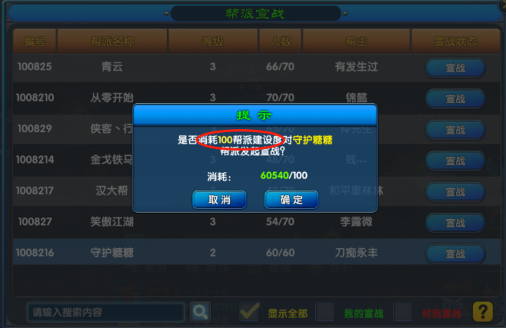 (小贴士:帮派宣战需消耗100帮派建设度哦)