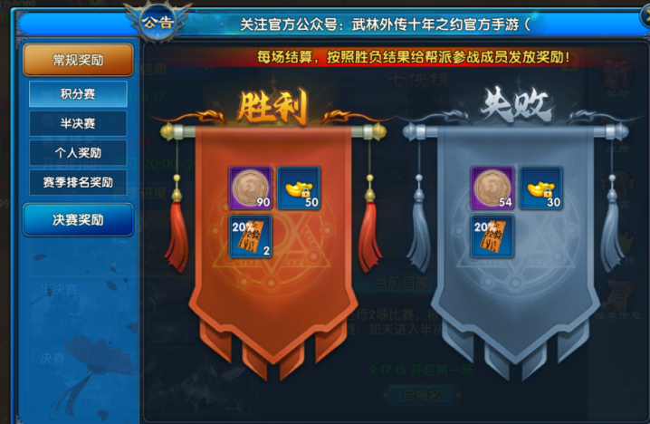 决。每场进行一次结算,按照胜负进行相应奖励。