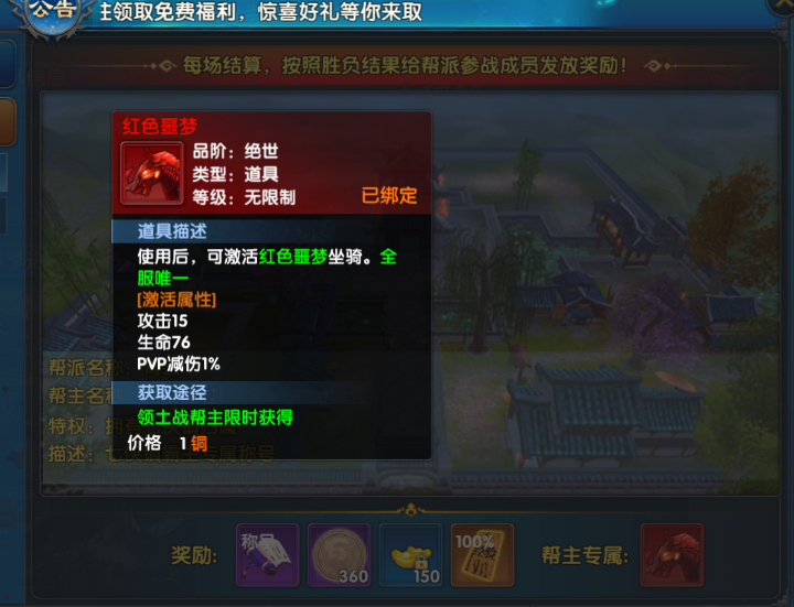 主】。帮主还会获得绝世坐骑【红色噩梦】。