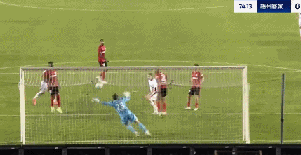 这并不是吴亚柯此役唯一一次关键扑救,比赛的第74分钟,奥马尔森近距离头球冲顶,但却被吴亚柯飞身抱出了底线。