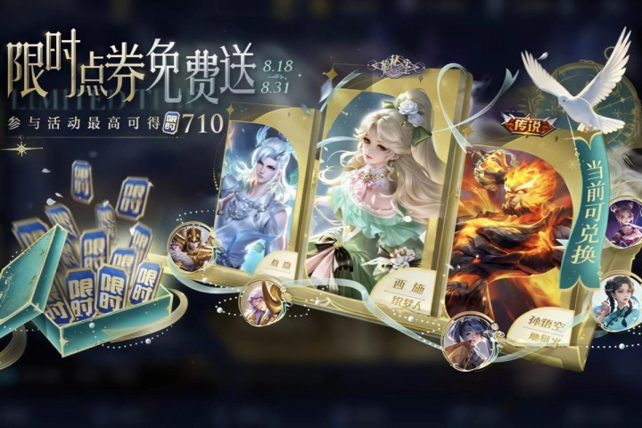 其二,要关注限时点券商城关闭的时间,这一期活动的结束时间是8/31,但限时点券商城关闭的时间为9/14,所以即便是提前拿到了710限时点券,以及8/19登陆直接赠送的100限时点券,也不必着急去兑换,完全可以等到第二期限时点券活动开放后,看具体能拿到的数量和自身的需求来判断何时兑换,从这次的限时点券商城奖池来看,是有八款1688限时点券传说皮肤以及四款2888限时点券的史诗皮肤,想必第二期应该还会有一定数量的限时点券放送。当然,如果已经确定好了自身的目标就是西施新皮肤织梦人,那么就无需过多思考,只要点券数量足够就可以兑换了。