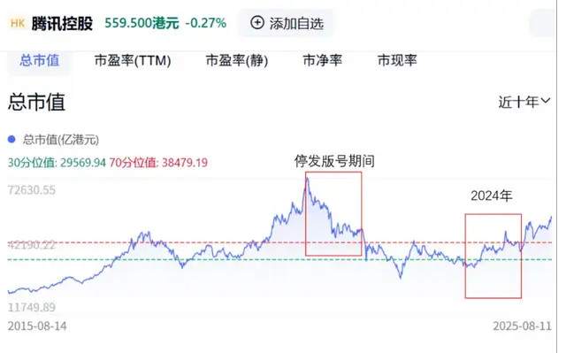从市场价值角度来看,腾讯在游戏领域的表现也深刻影响着其股价走势。比如在2021年7月之后,游戏版号审批暂停了近7个月,腾讯股价开始持续下滑。彼时正值腾讯2020年年报发布后,但腾讯该年业绩非常强劲,可见游戏业务对腾讯市值的影响,远大于其他业务。