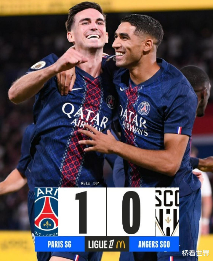 法甲第 2 轮巴黎圣日耳曼坐镇王子公园球场,凭借下半场法比安・鲁伊斯(Fabián Ruiz)的制胜进球,以 1-0 小胜昂热,延续正式比赛全胜纪录。