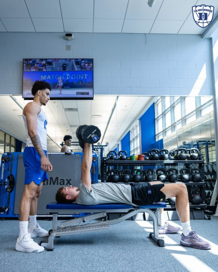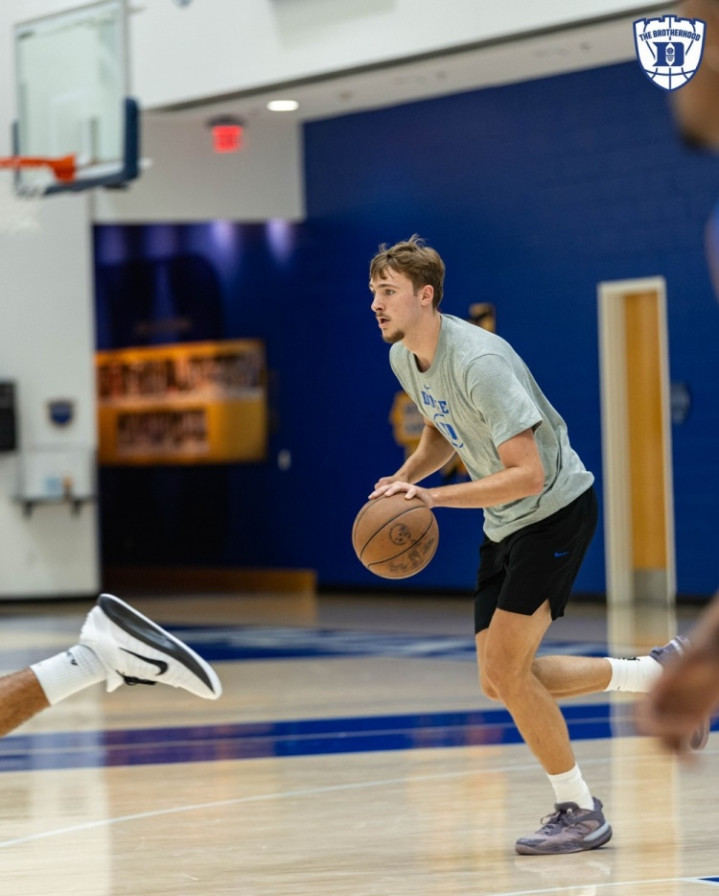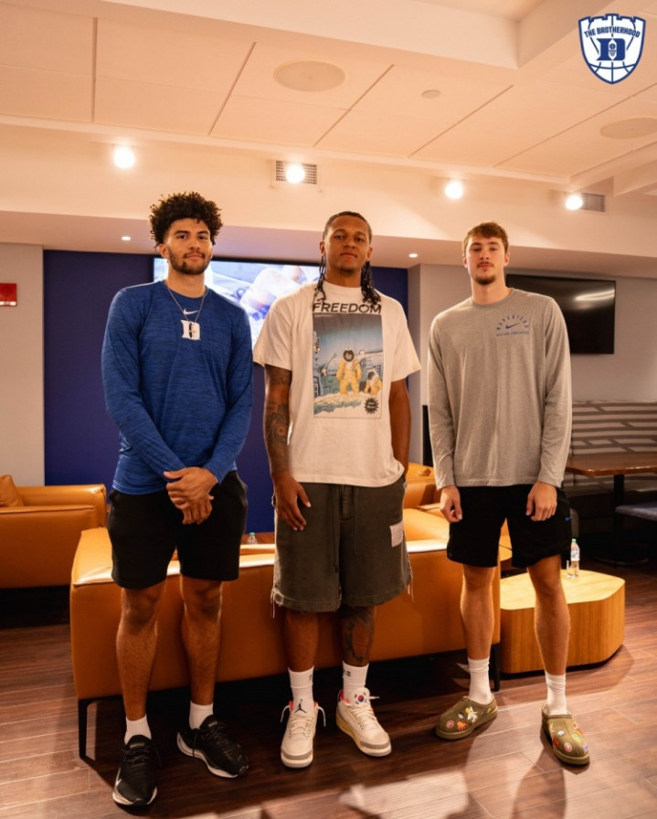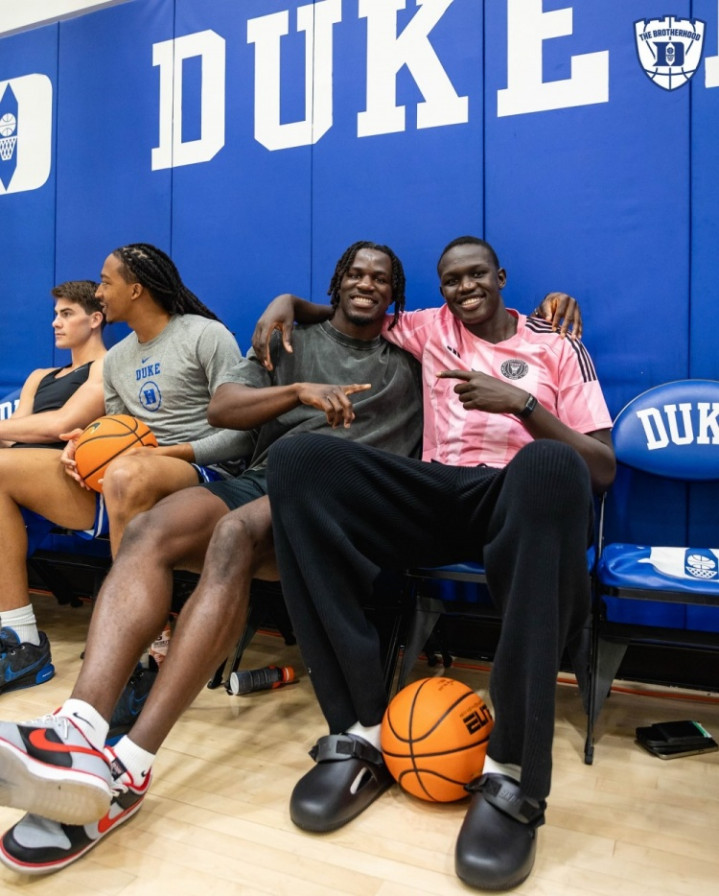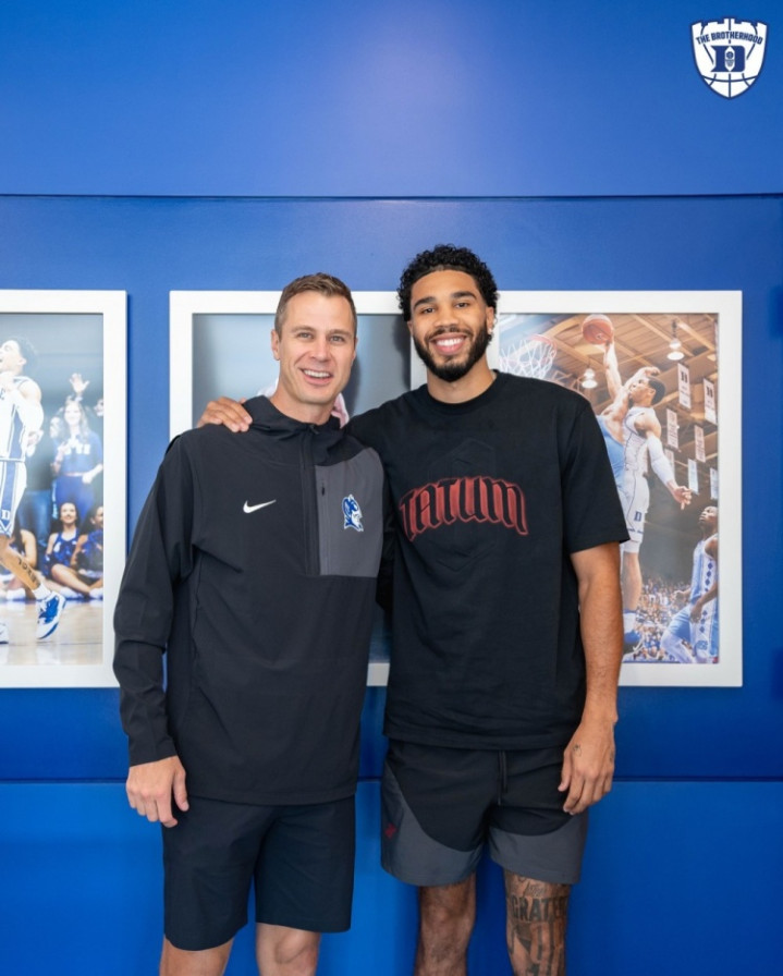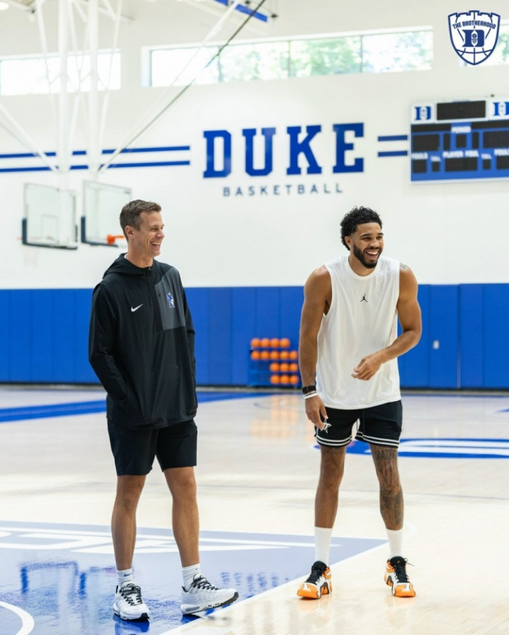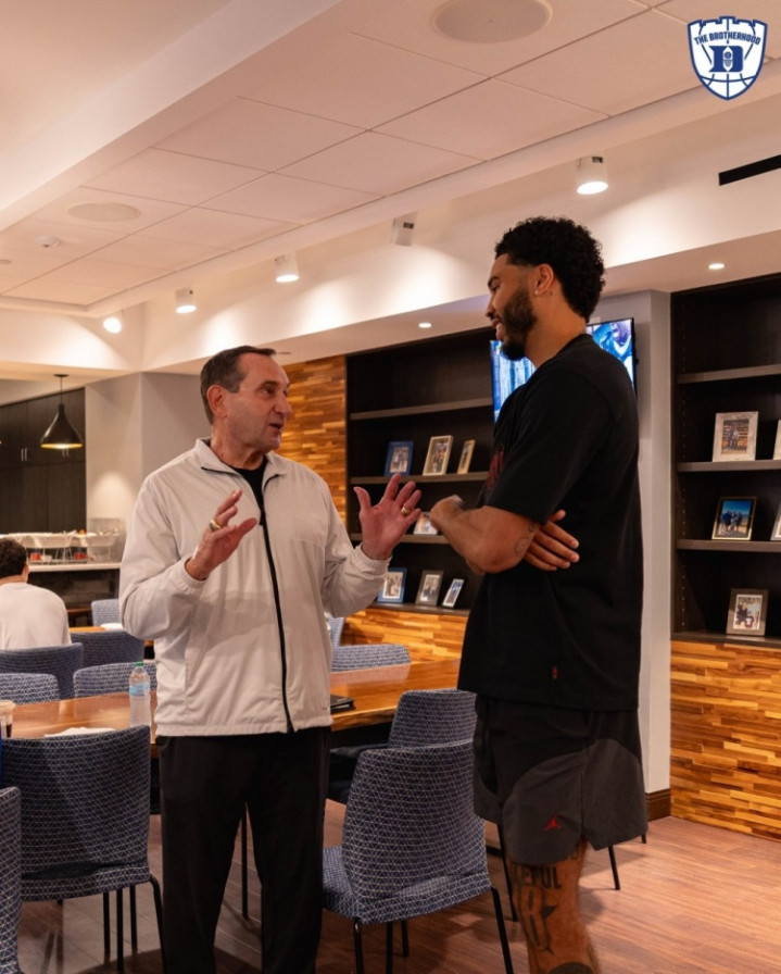 直播吧8月30日讯杜克大学官方社媒更新动态,晒出了前主帅老K教练,还有杜克校友塔图姆、班凯罗、今年的新秀弗拉格、马卢阿奇等人回到母校训练的照片,并写道:“永远的兄弟情。”